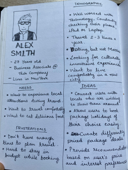 For this app, I focussed on young professionals who travel upto 2-3 times a year for work or leisure. I conducted interviews with 5 such users with the following goals: