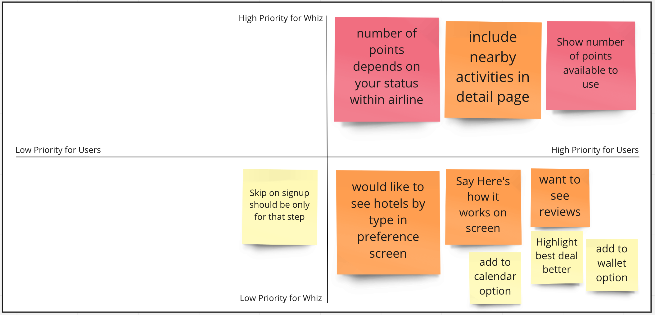 I brainstormed a wide range of ideas to help alleviate problems that user’s faced while booking their travel. The best ideas were picked based on their originality and ease of implementation. These came together in a Storyboard that highlighted an ideal user interaction on Whiz.