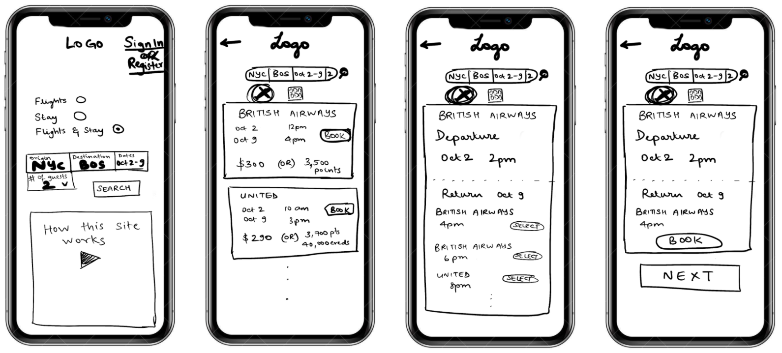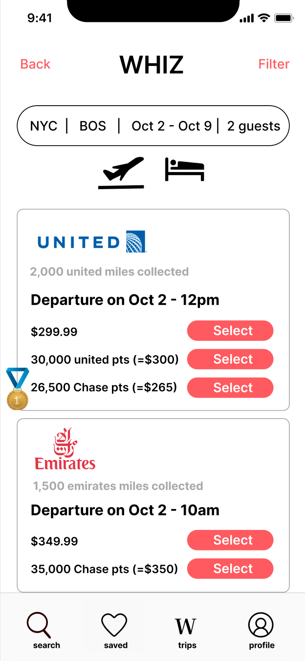 While observing user’s book their travel, I noticed that they expressed the most confusion and uncertainty when they had to toggle between travel comparison websites and websites of their preferred loyalty programs to compare deals. This was a key interaction where Whiz could shine.