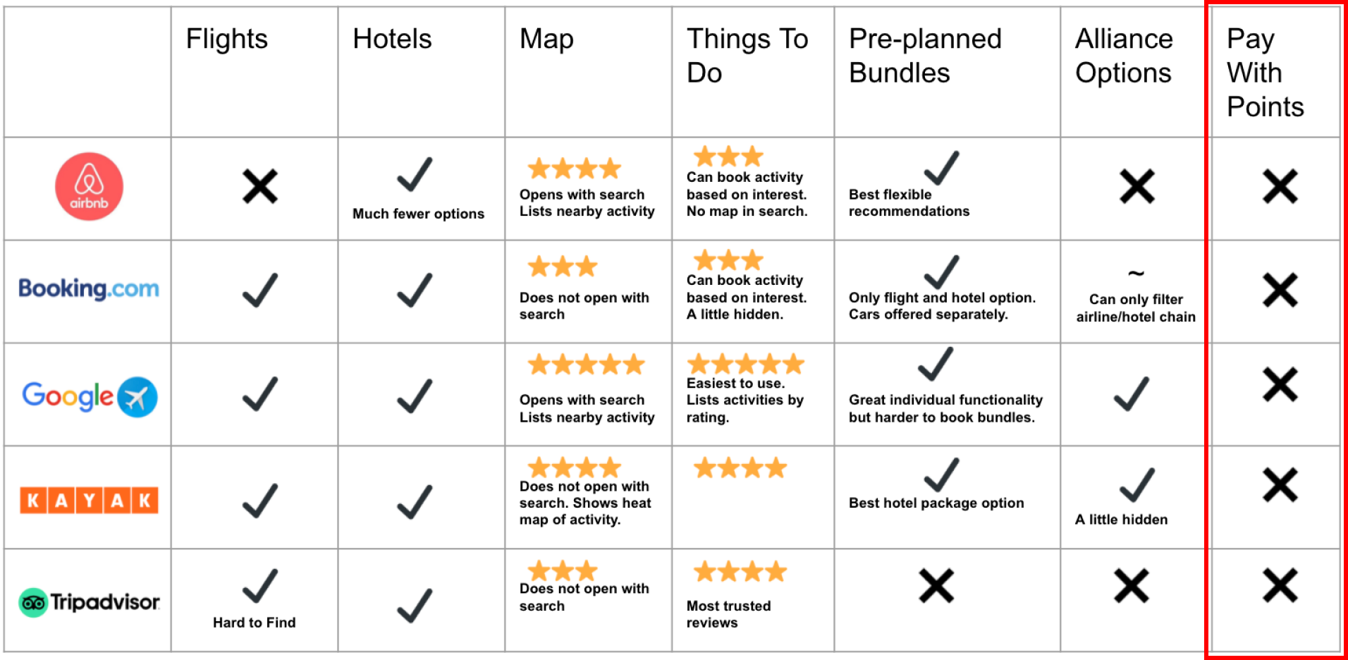Travelers are all too familiar with the notion of jumping from site to site to find the best flight and accomodation deals. This effort increases when they want to use credit card points or airline/hotel reward memberships to book their travel.